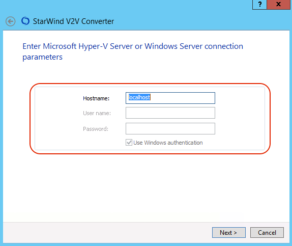 Вводим доступы для подключения к Hyper-V серверу, в случае с локальным, эти действия не требуются.