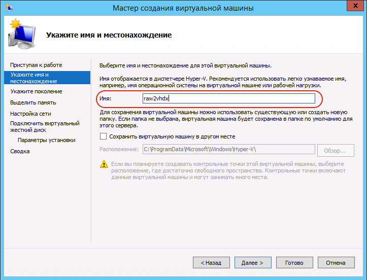 В моем примере указан сервер Hyper-V, можно указать просто локальный путь.