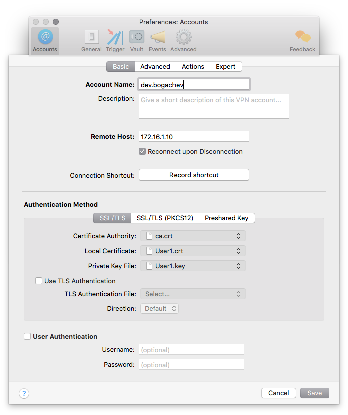 Настройка OpenVPN клиента будет выполняться под MacOS используя клиент Shimo. Принципиальной разницы между классическим OpenVPN нет.