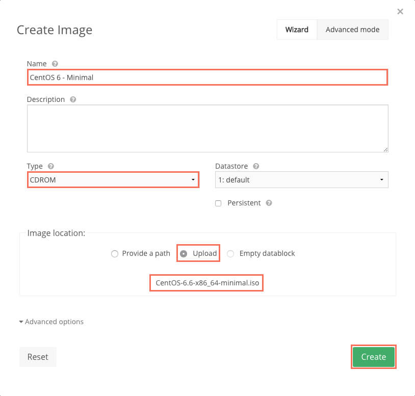 Переходим в Virtual Resources -> Images и создаем новый диск.