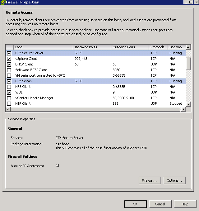 В vSphere клиенте открываем вкладку Configuration, раздел Security Profile, и далее Properties для служб.